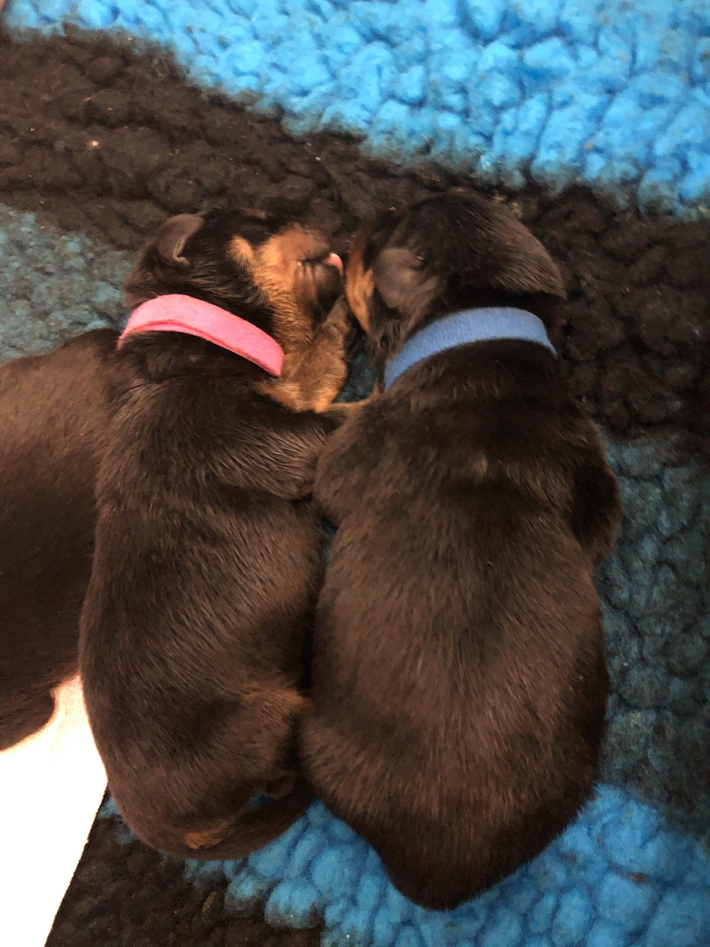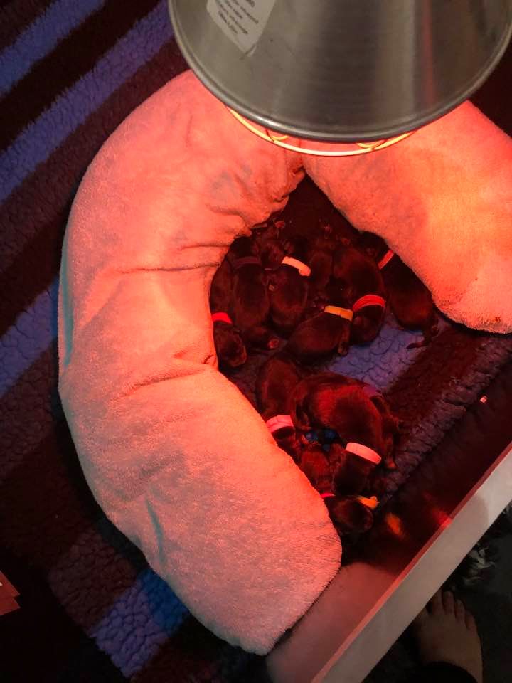 De bevalling is heel vlot verlopen. Mama en pups doen het uitstekend.